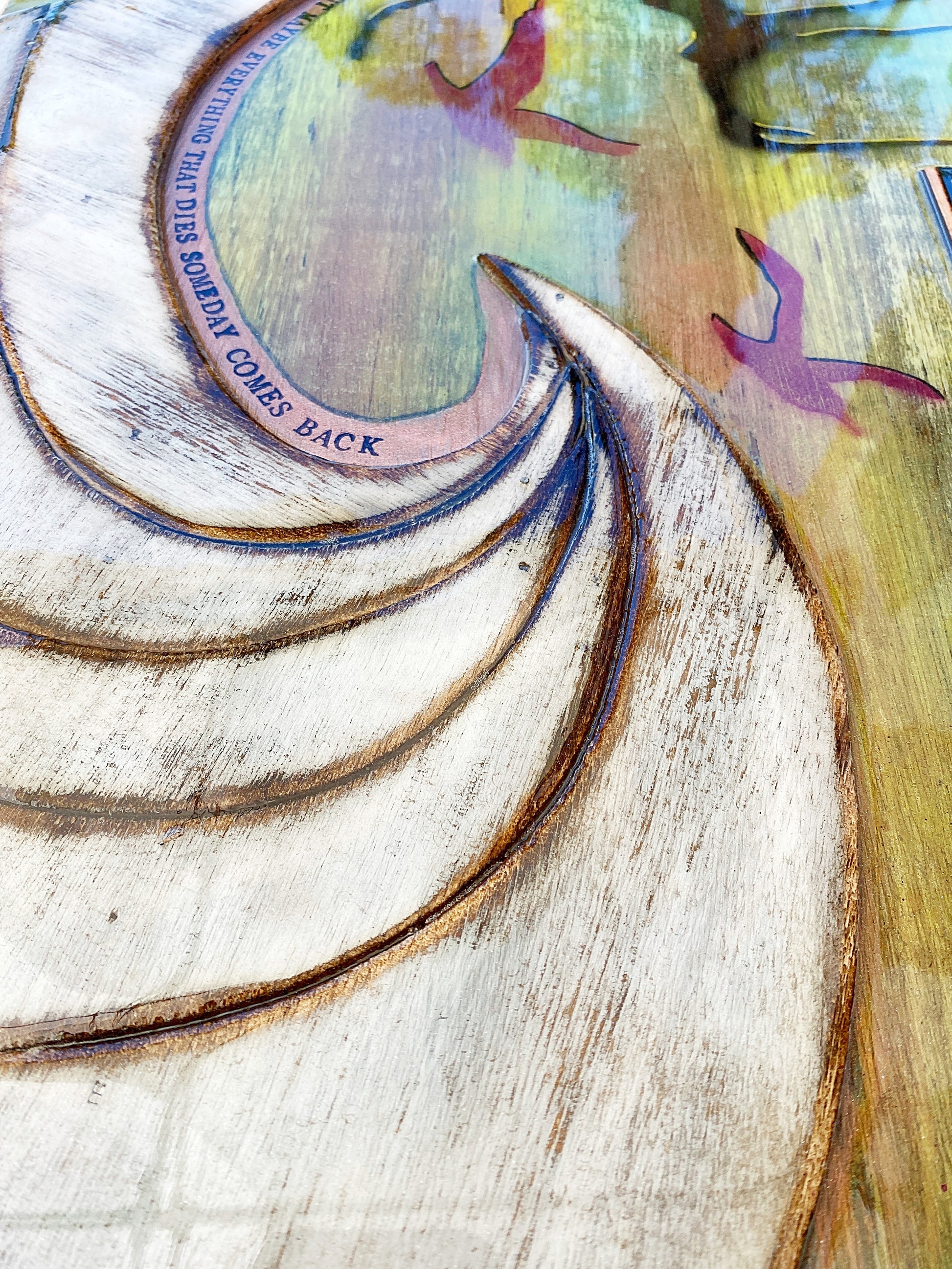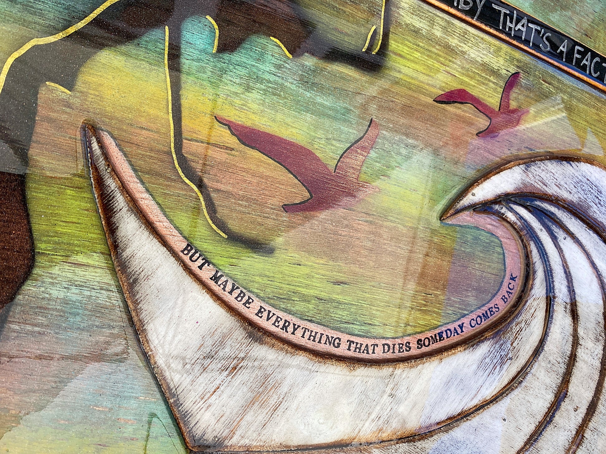 Each of these pieces are one of a kind and made to order. I do my best to capture what the piece really looks like. The pictures just don't it justice. Each one is finished with a thick coat of crystal clear epoxy, which makes the art shine and catch the light in a very unique way, making it pop off the wall.