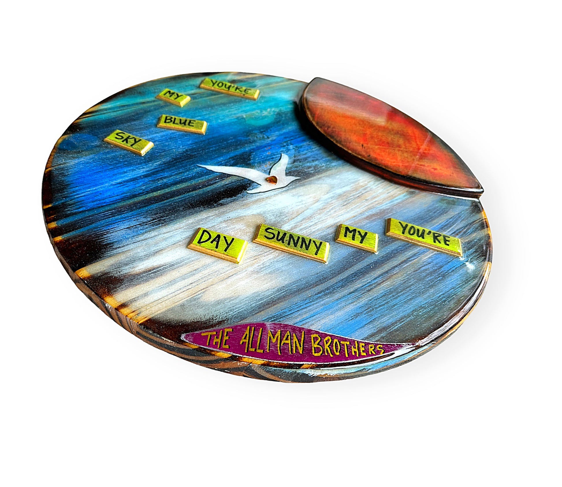 Each of these pieces are one of a kind and made to order. I do my best to capture what the piece really looks like. The pictures just don't it justice. Each one is finished with a thick coat of crystal clear epoxy, which makes the art shine and catch the light in a very unique way, making it pop off the wall.