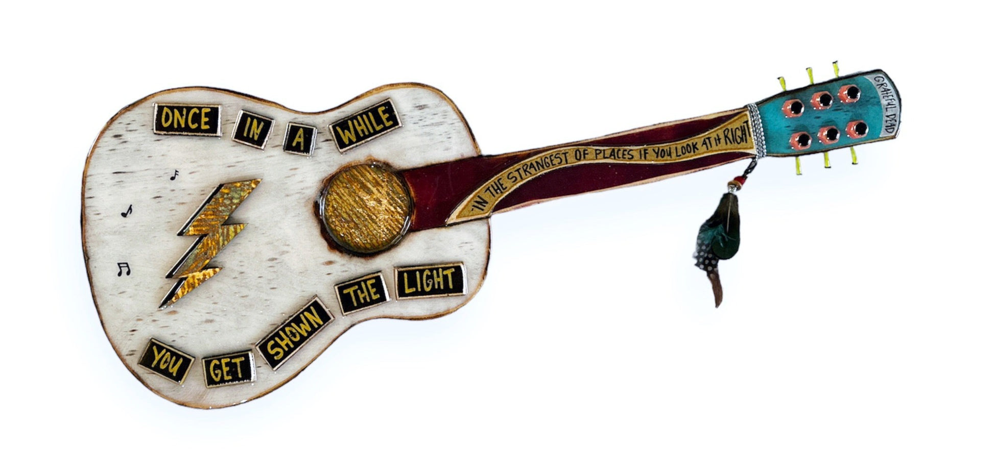 Funky Grateful Dead inspired guitar. This piece measures approximately 28 inches long