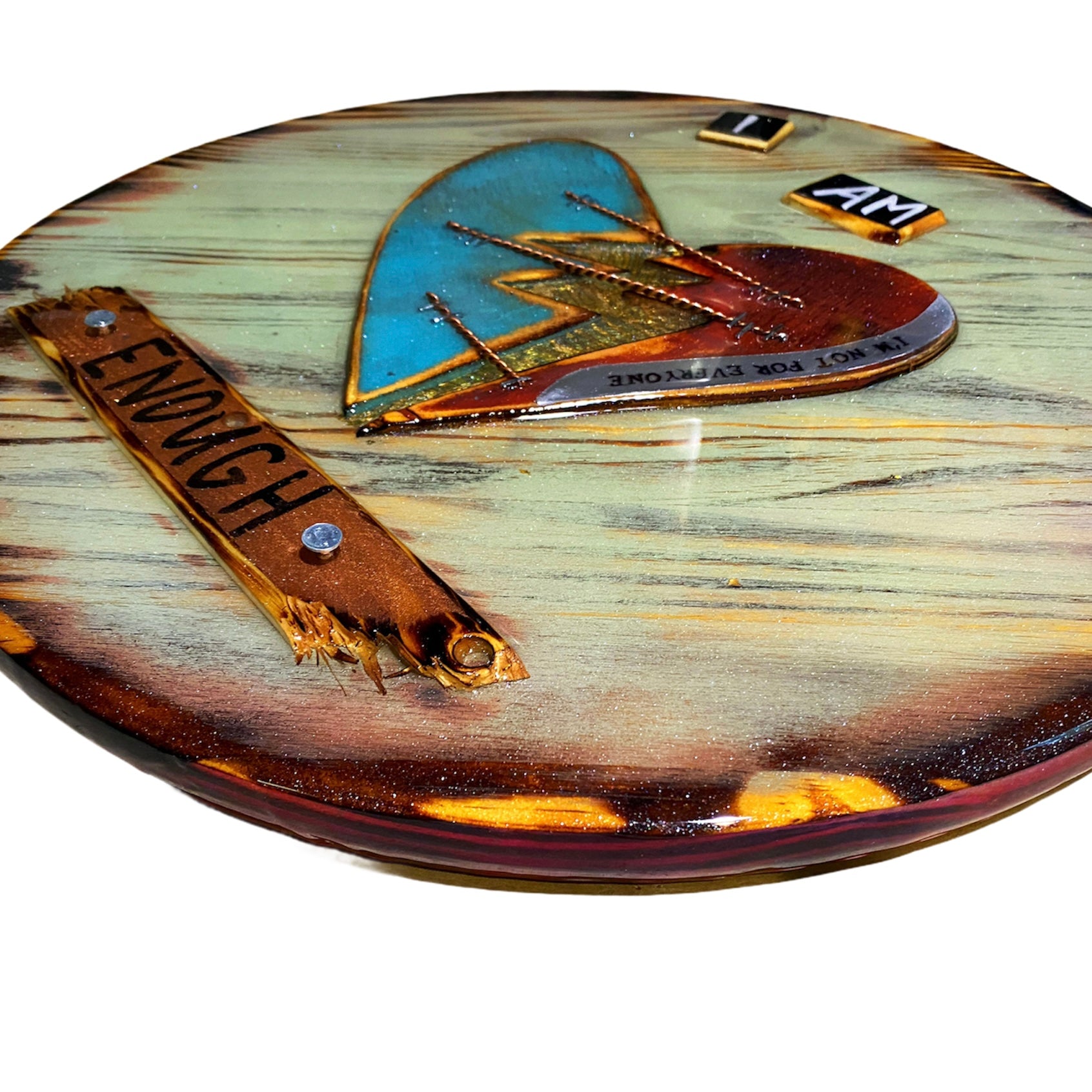 Each of these pieces are one of a kind and made to order. I do my best to capture what the piece really looks like. The pictures just don't it justice. Each one is finished with a thick coat of crystal clear epoxy, which makes the art shine and catch the light in a very unique way, making it pop off the wall.