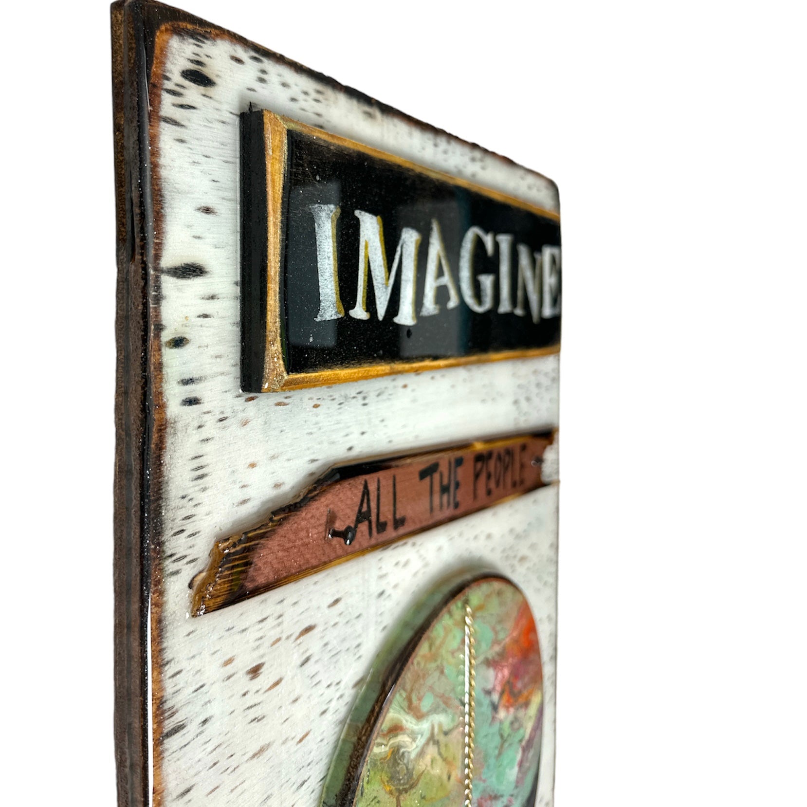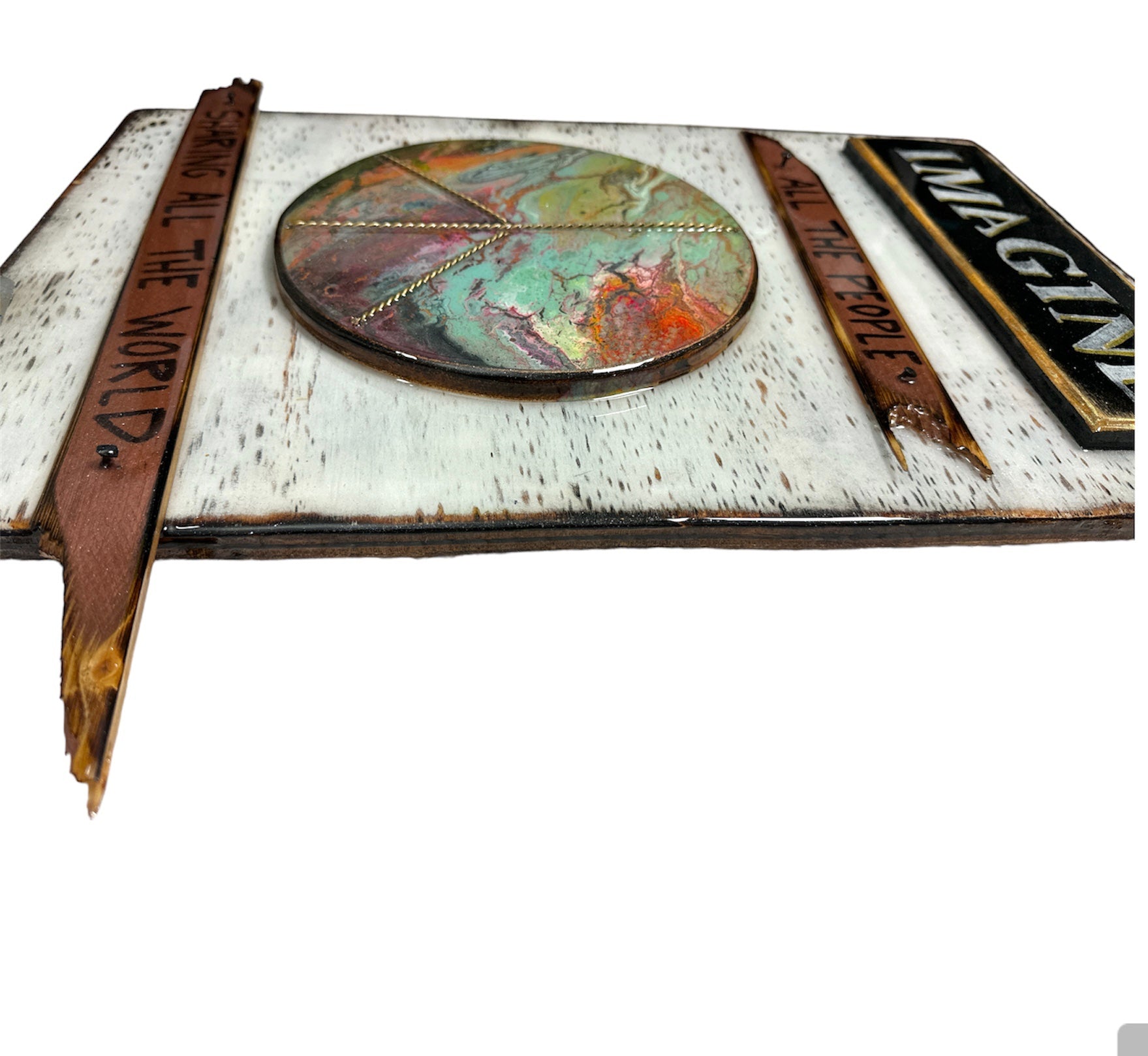 Each of these pieces are one of a kind and made to order. I do my best to capture what the piece really looks like. The pictures just don't it justice. Each one is finished with a thick coat of crystal clear epoxy, which makes the art shine and catch the light in a very unique way, making it pop off the wall.
