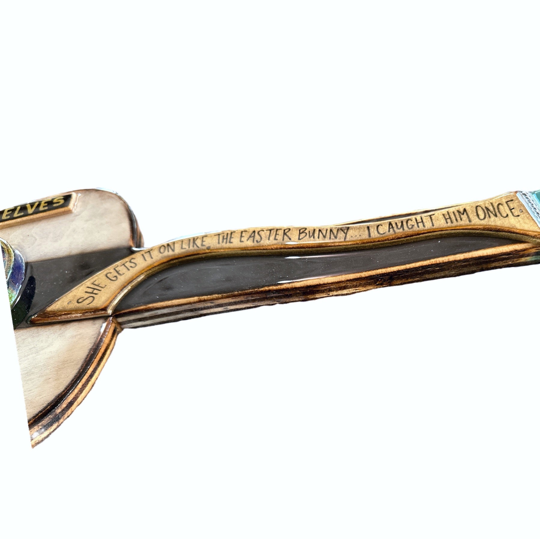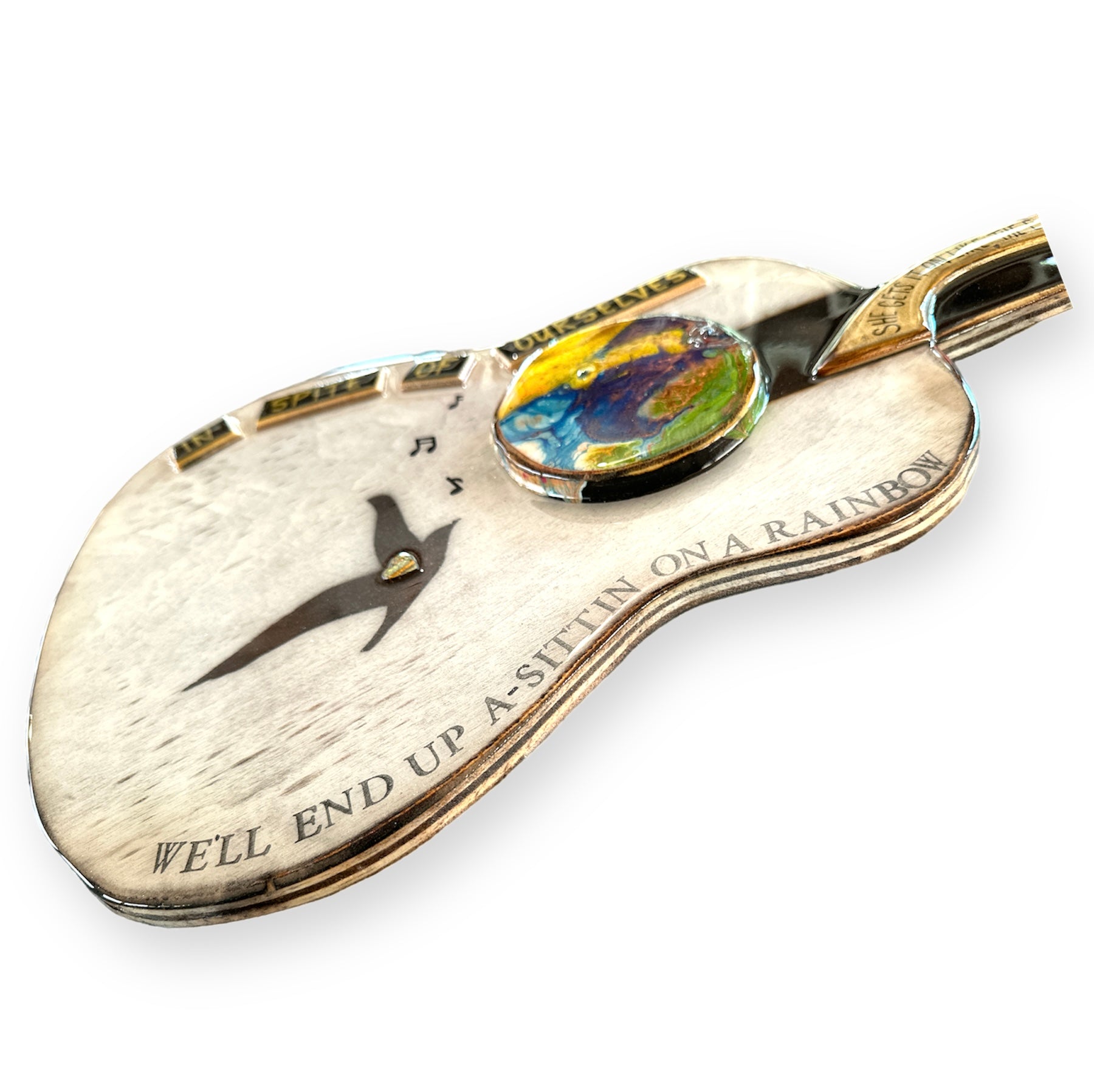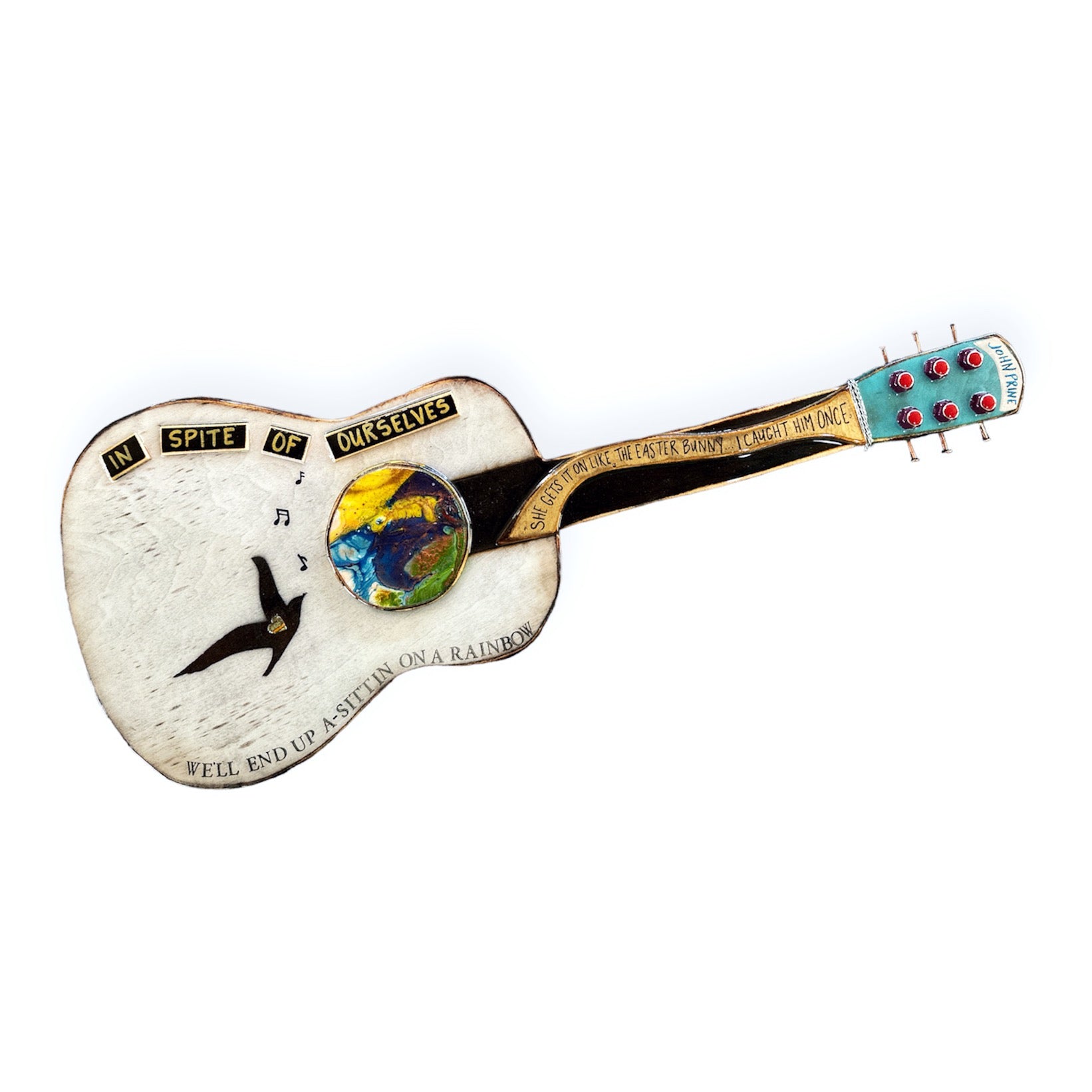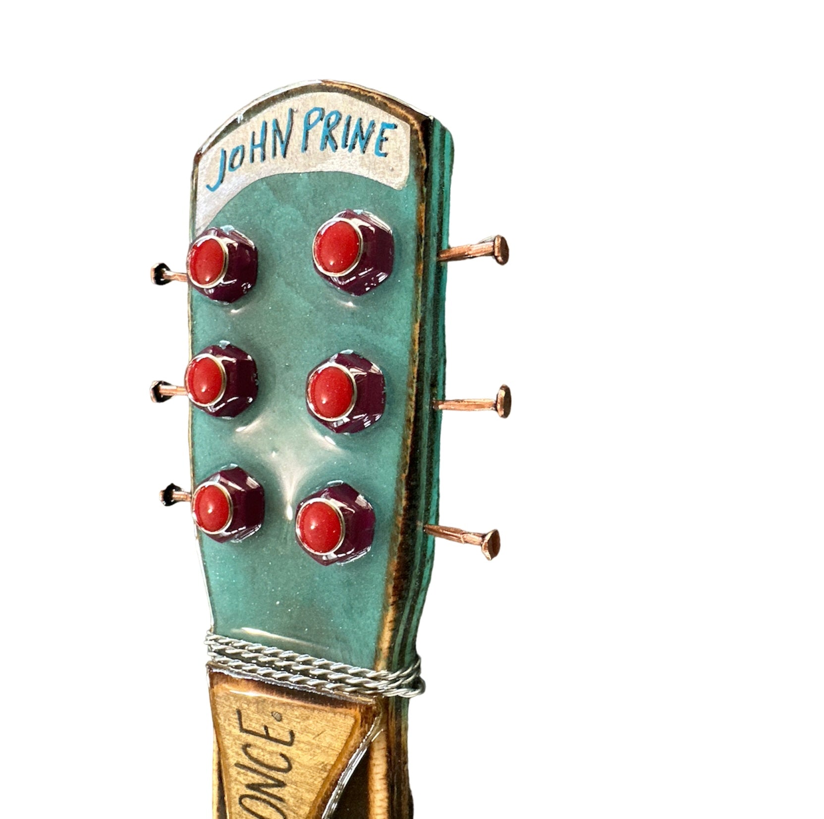 Funky John Prine inspired guitar. This piece measures approximately 24 inches long