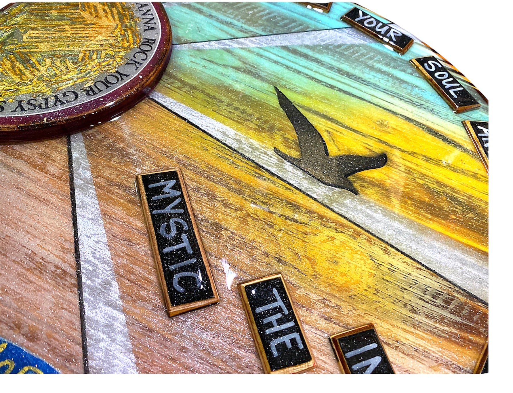Each of these pieces are one of a kind and made to order. I do my best to capture what the piece really looks like. The pictures just don't it justice. Each one is finished with a thick coat of crystal clear epoxy, which makes the art shine and catch the light in a very unique way, making it pop off the wall.