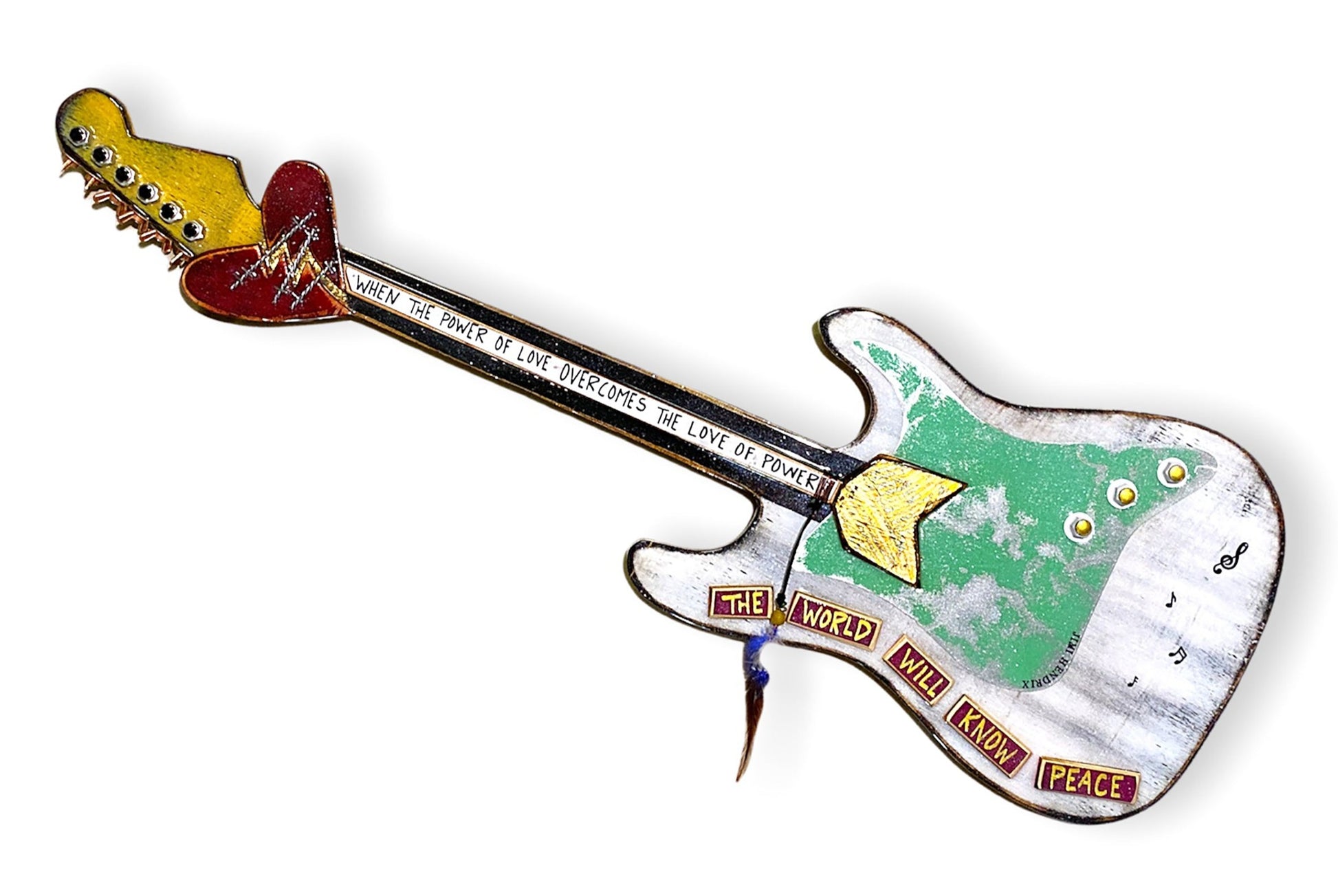 Funky Jimi Hendrix inspired guitar. This piece measures approximately 42 inches long