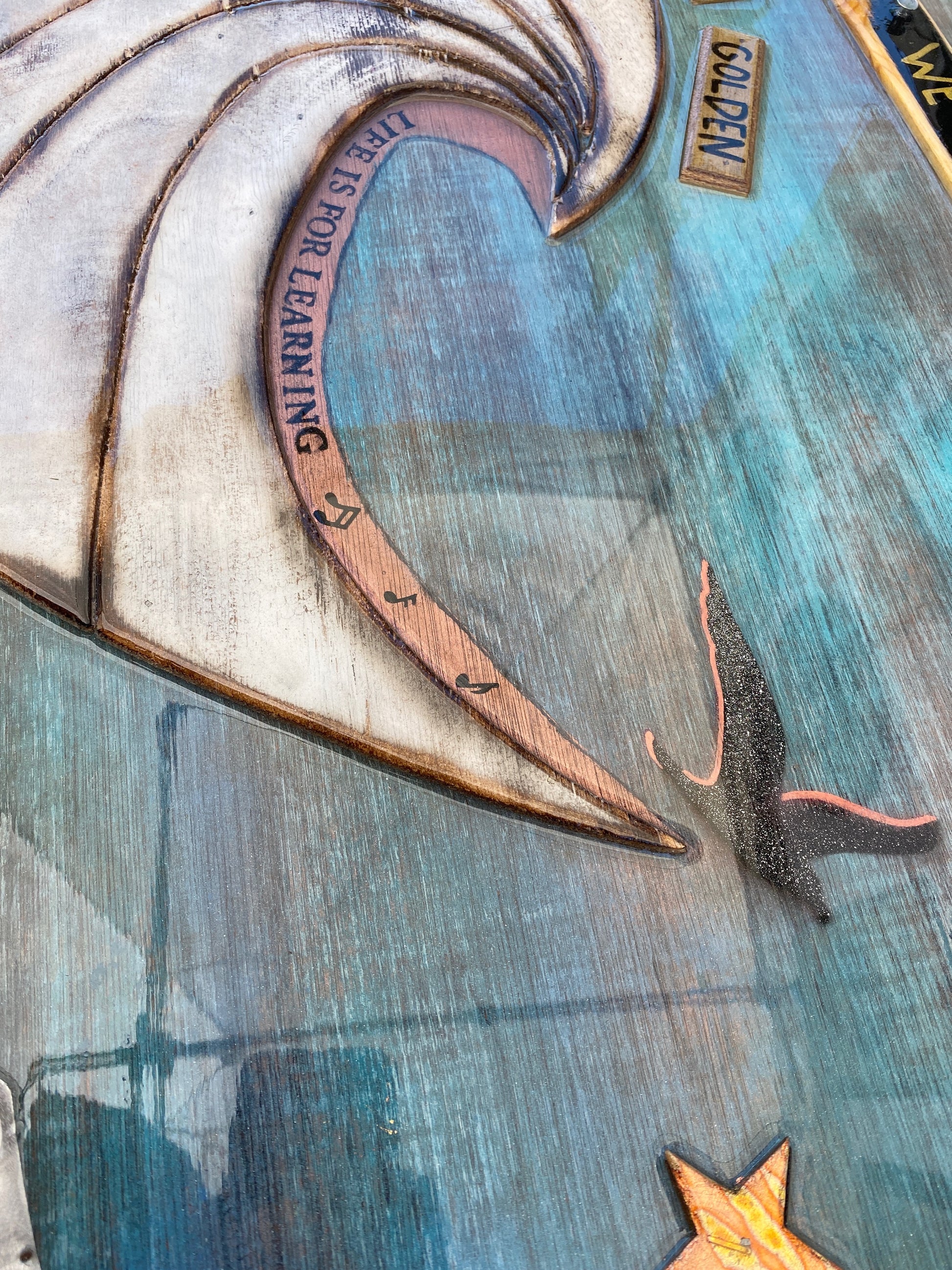 Each of these pieces are one of a kind and made to order. I do my best to capture what the piece really looks like. The pictures just don't it justice. Each one is finished with a thick coat of crystal clear epoxy, which makes the art shine and catch the light in a very unique way, making it pop off the wall.